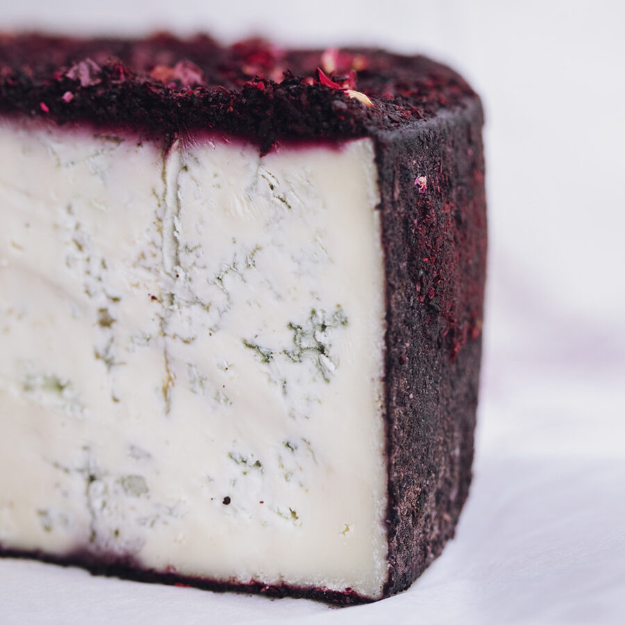 Littéralement « Le seigneur » en dialecte Lombard. Ce majestueux bleu de chèvre au lait cru est affiné avec des framboises, de l’hibiscus et des pétales de roses. D’une texture crémeuse, il est délicatement veiné. L’acidité de la framboise écrasée répond parfaitement à l’onctuosité saline du persillé de chèvre.